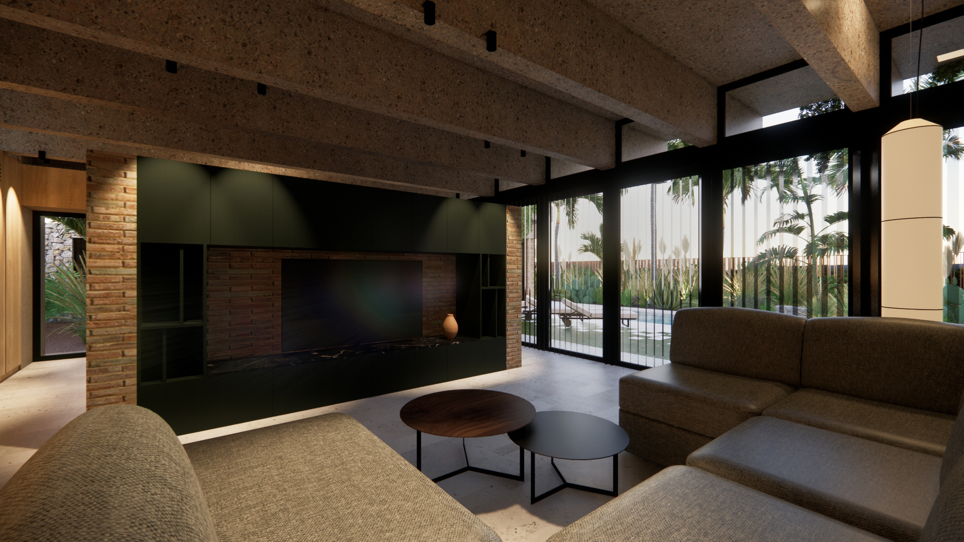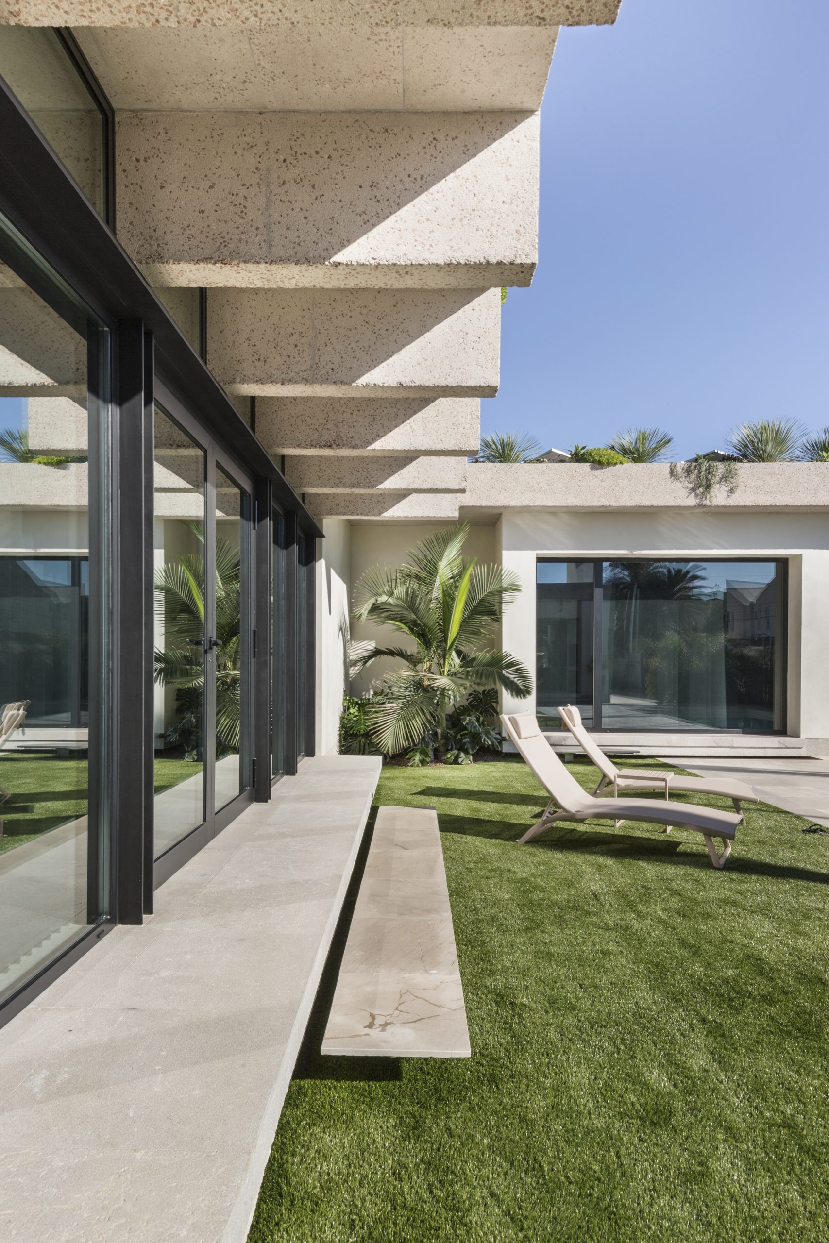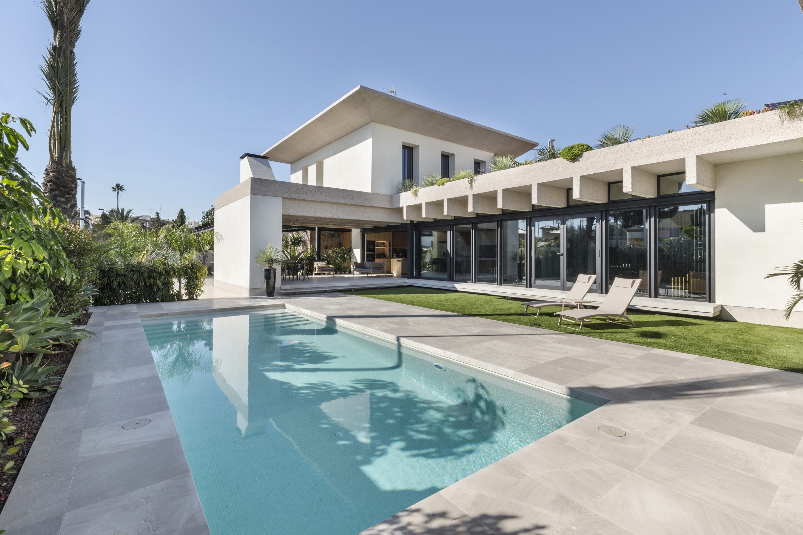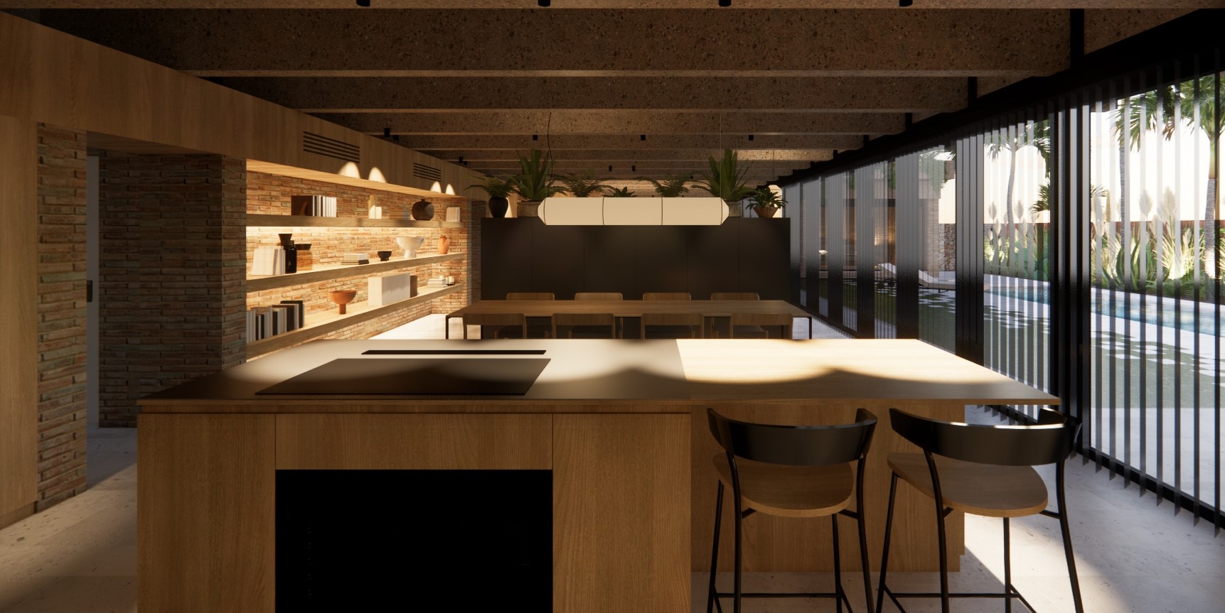 La distribución responde a las necesidades de un matrimonio cuyos hijos ya no vivien en casa, y donde una de nuestras prioridades ha sido el vínculo con el exterior, de modo que desde todas las estancias principales de la vivienda se tenga una conexión visual directa con el jardín y la piscina a través de grandes zonas de ventanales que a su vez se protegen del sol con distintos sistemas de oscurecimiento por el interior y exterior especialmente diseñados para la vivienda.
