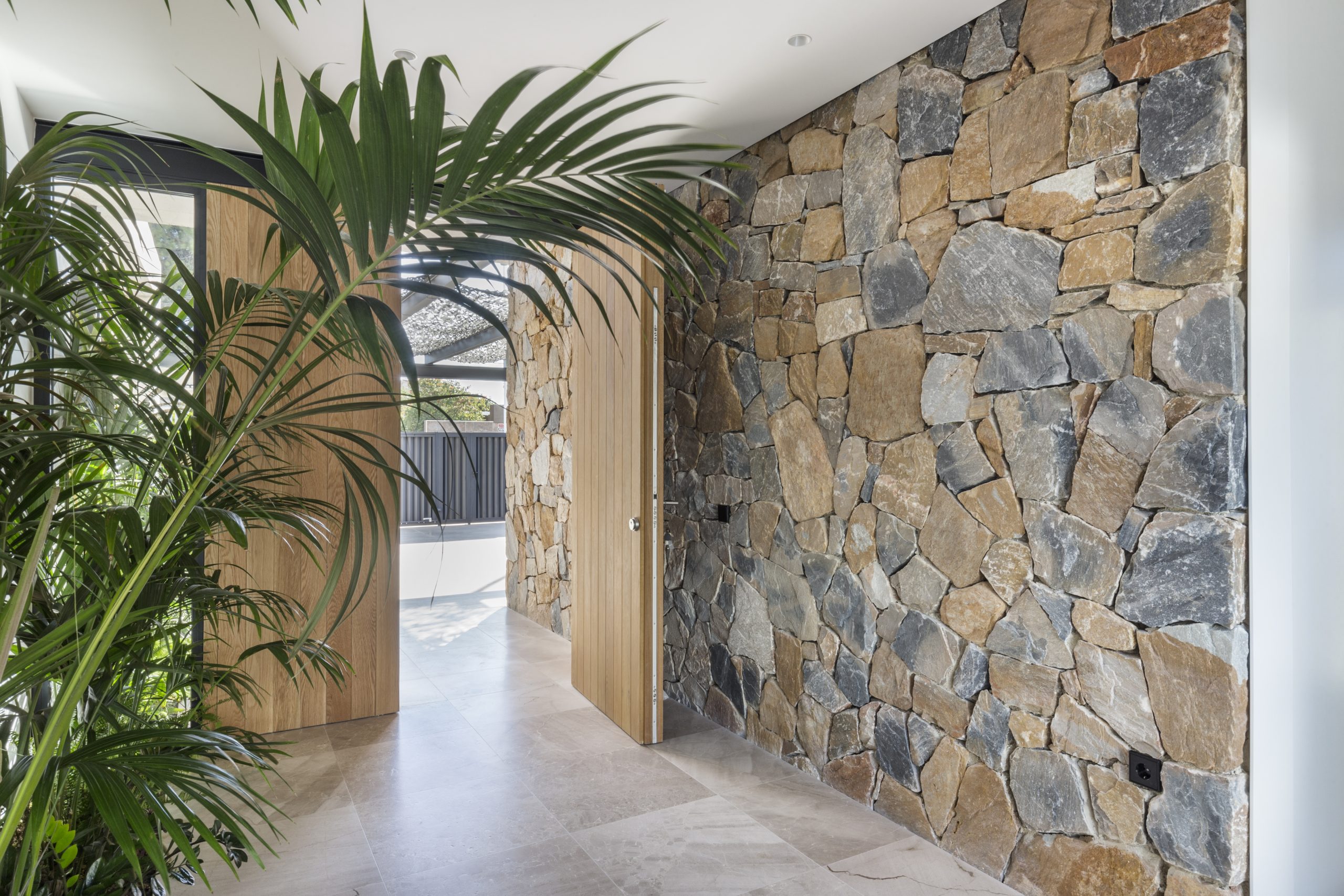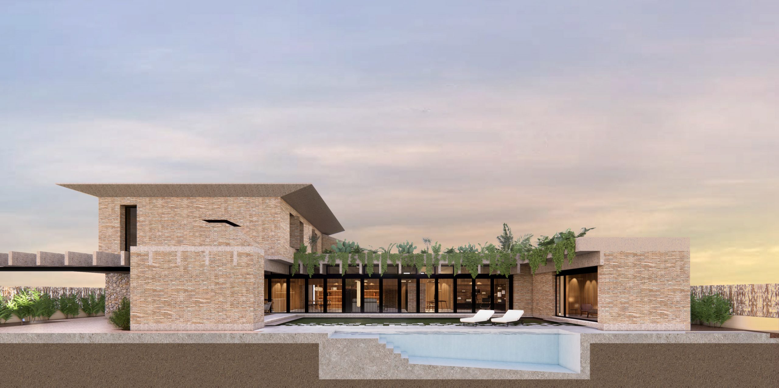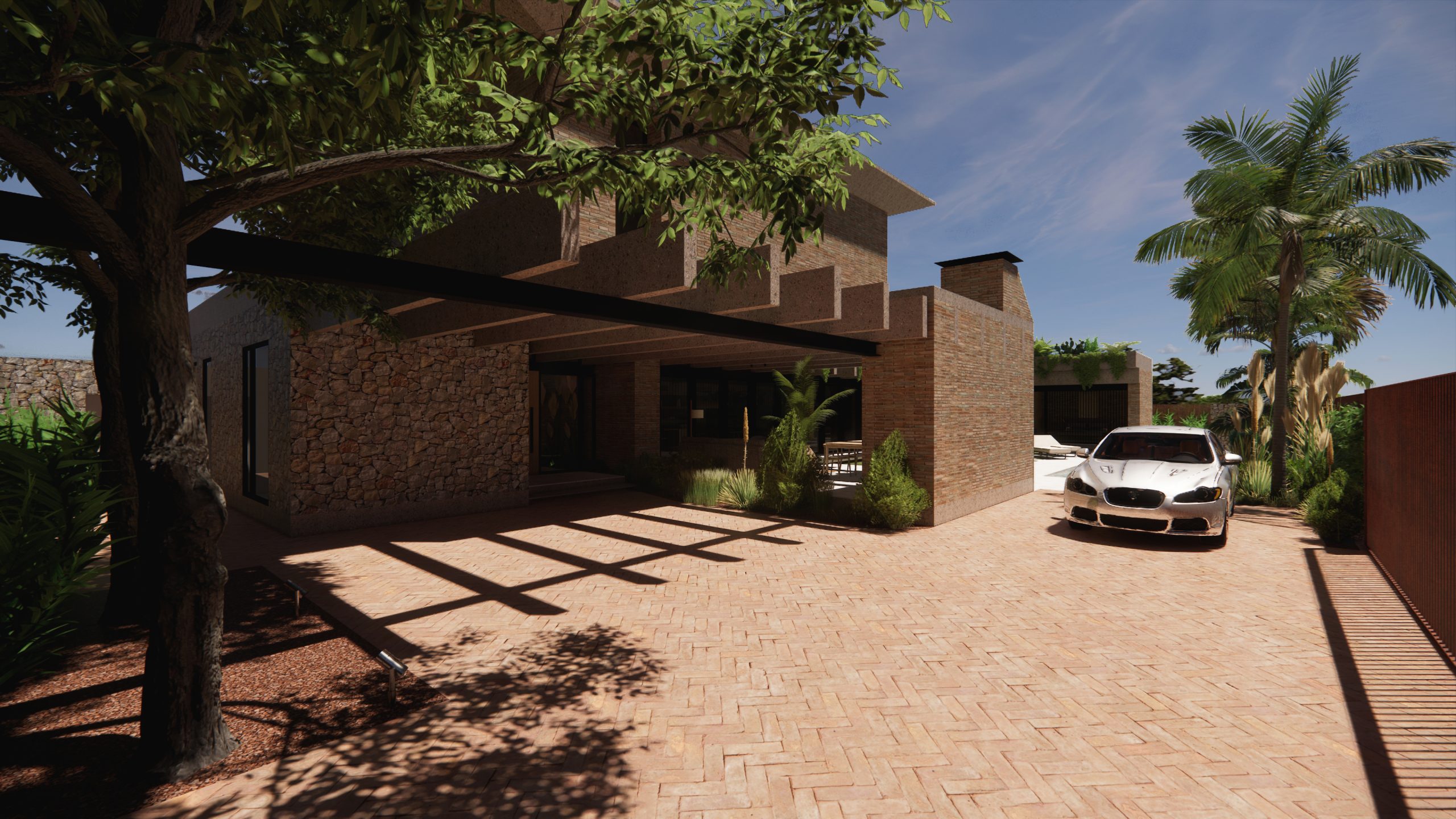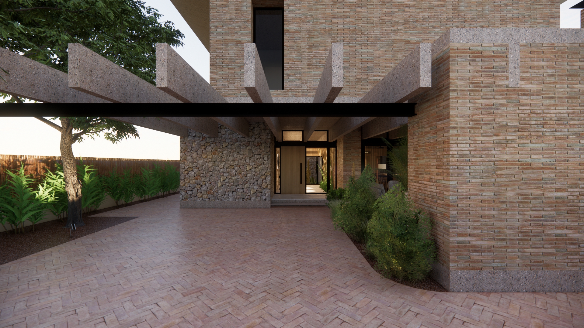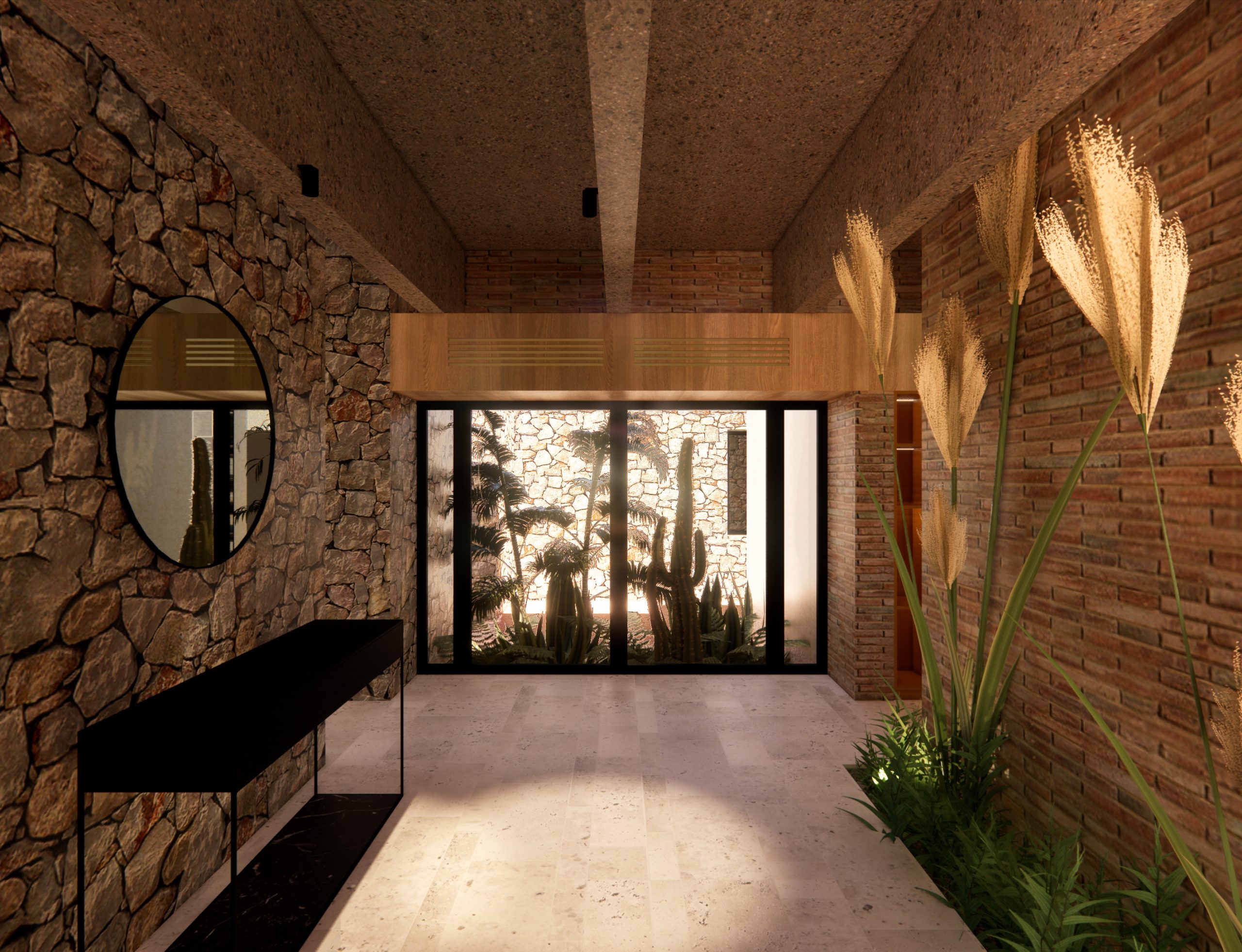 Utilizamos materiales naturales, como los estucados de cal hidráulica, la mampostería de piedra carrascoy del lugar o los ladrillos de barro que conforman el cerramiento de la vivienda y a su vez sirven como acabado interior y exterior.