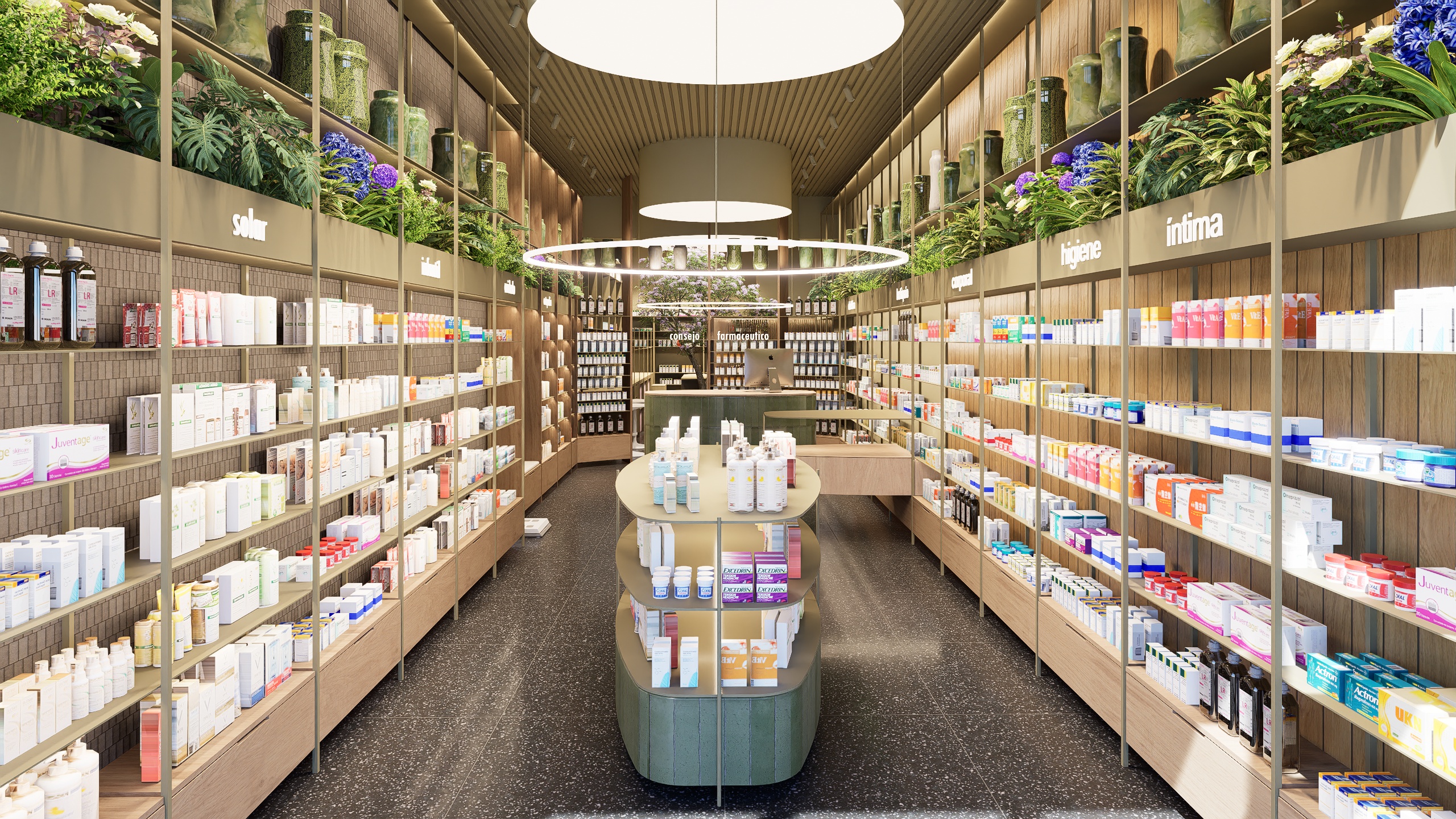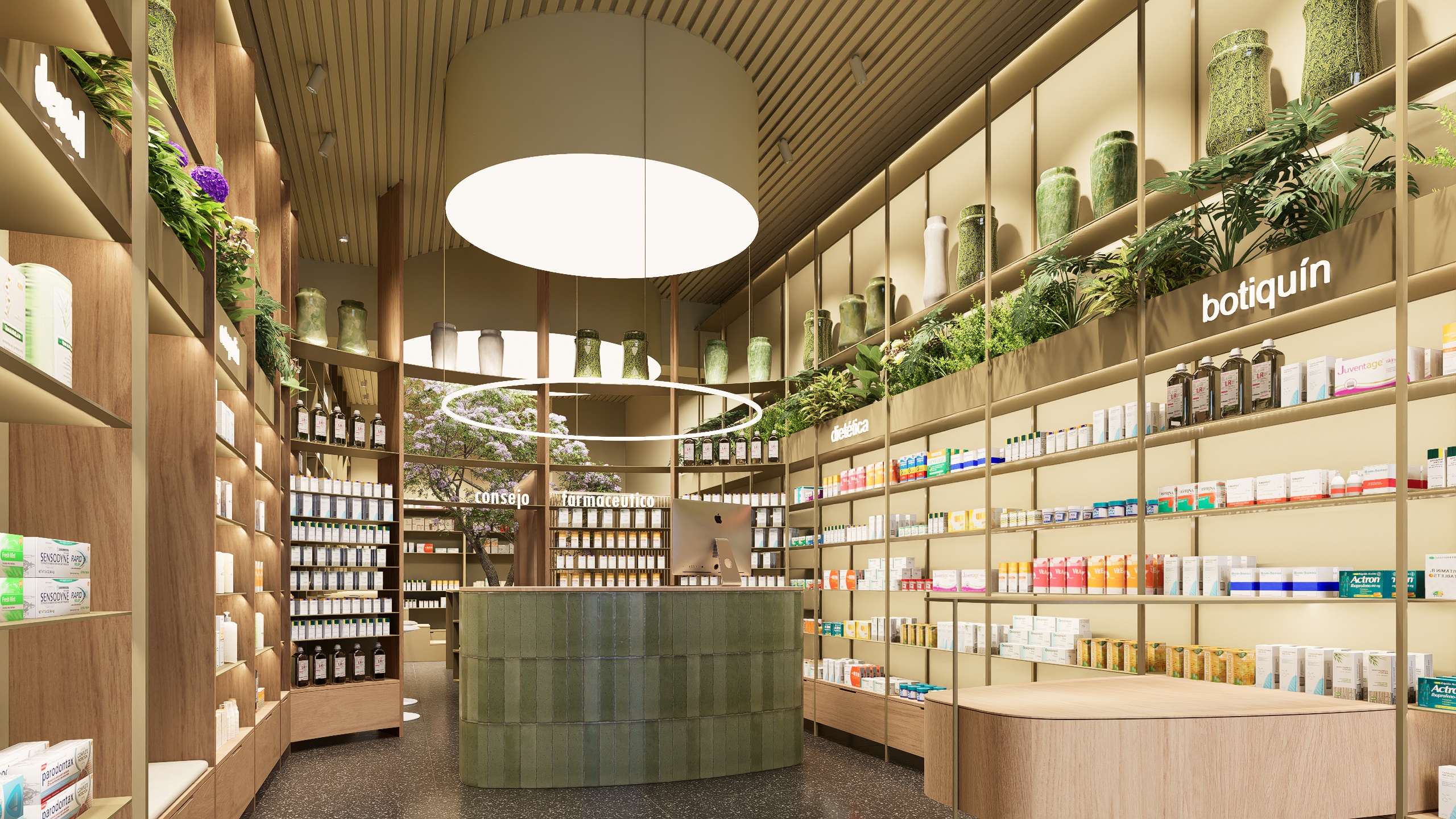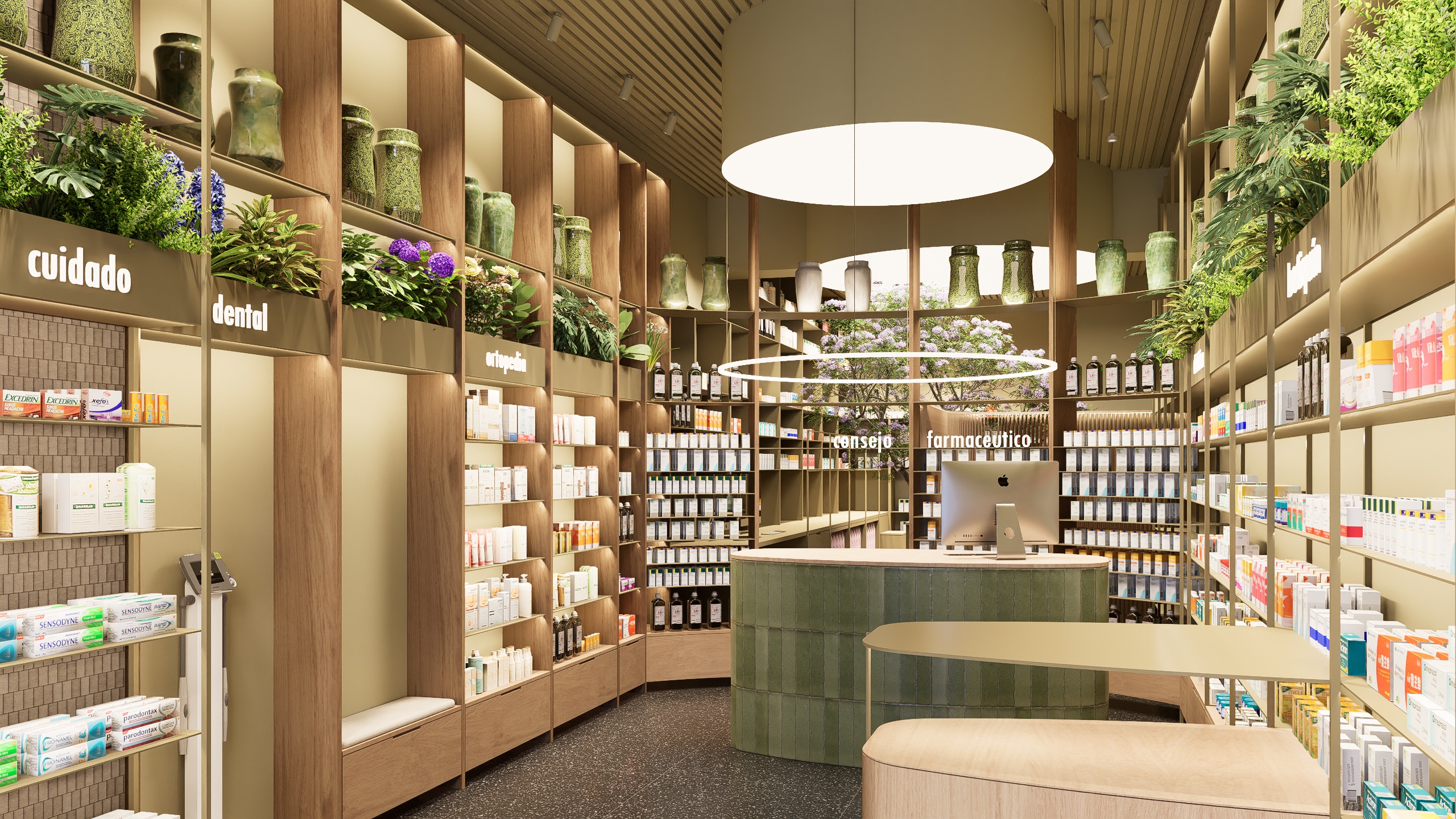 Con esa idea, la imagen de la farmacia debía ser lo suficientemente atractiva y singular para que invitara a entrar, y al mismo tiempo transmitir una imagen tranquila y natural adecuada a un local sanitario.