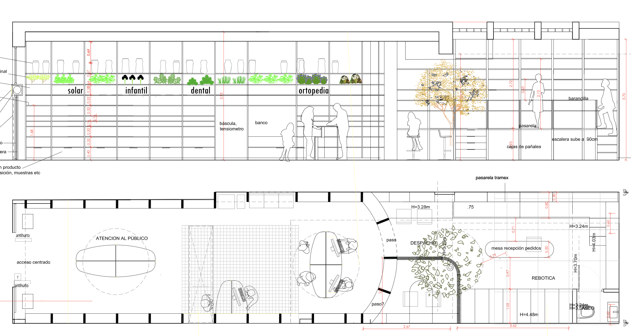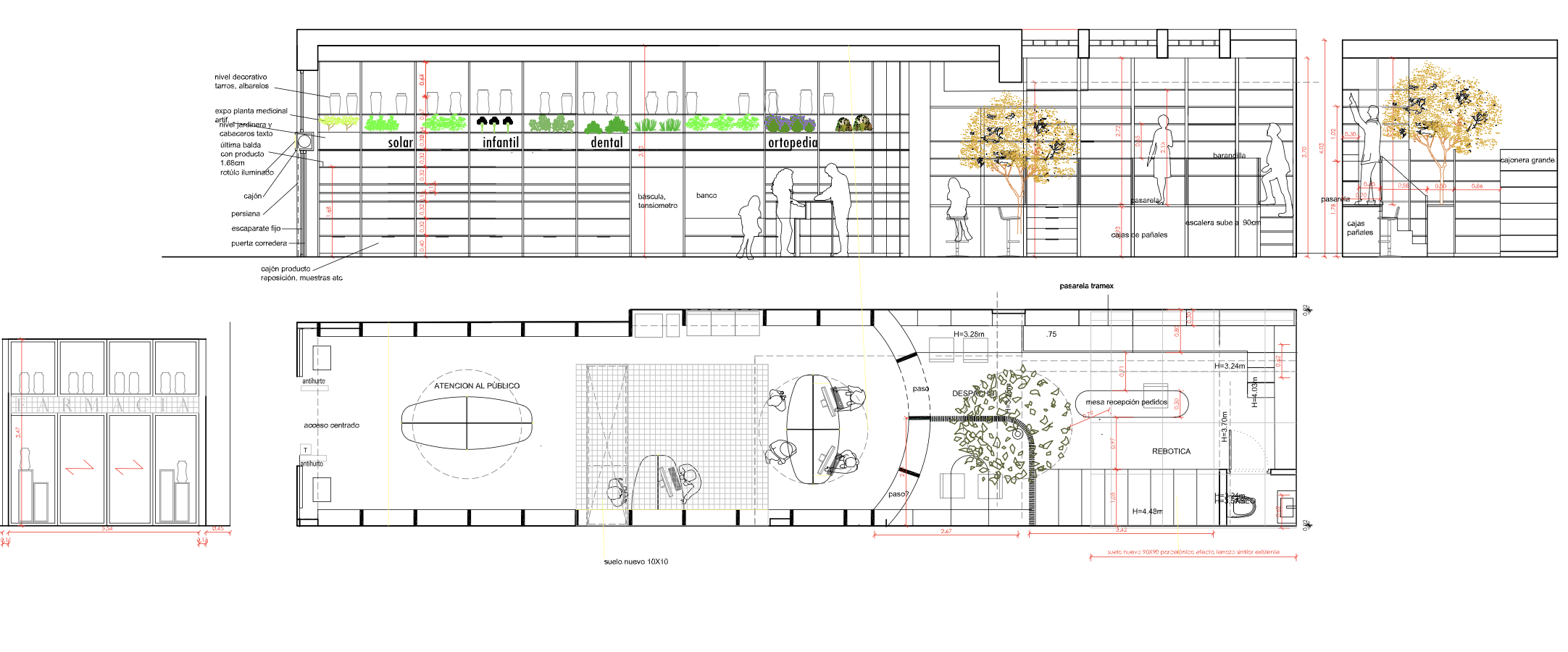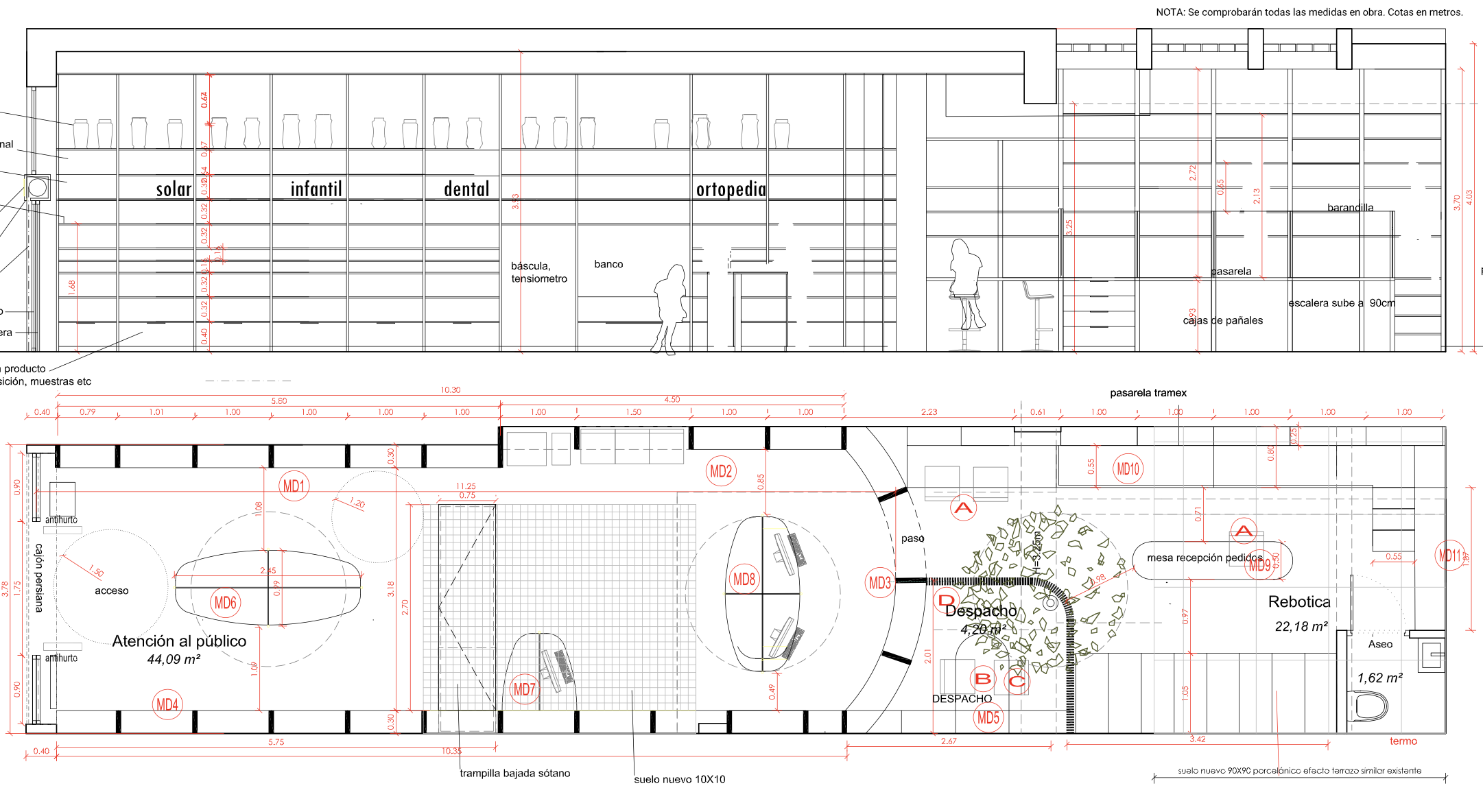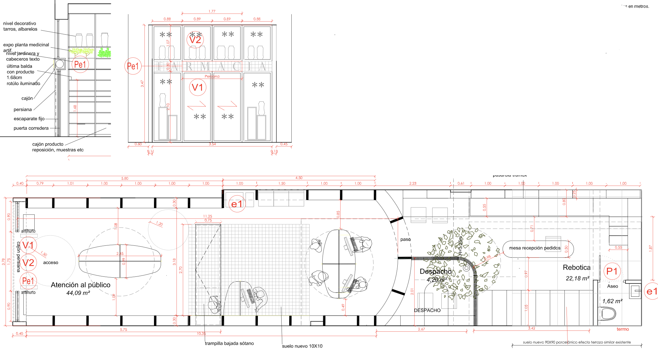 Una farmacia en el centro de Madrid, que necesita renovar su imagen y ofrecer una sensación de farmacia actualizada, donde, aparte de la dispensación de medicamentos, la atención y el asesoramiento personalizado al cliente pase a ser un servicio muy importante.